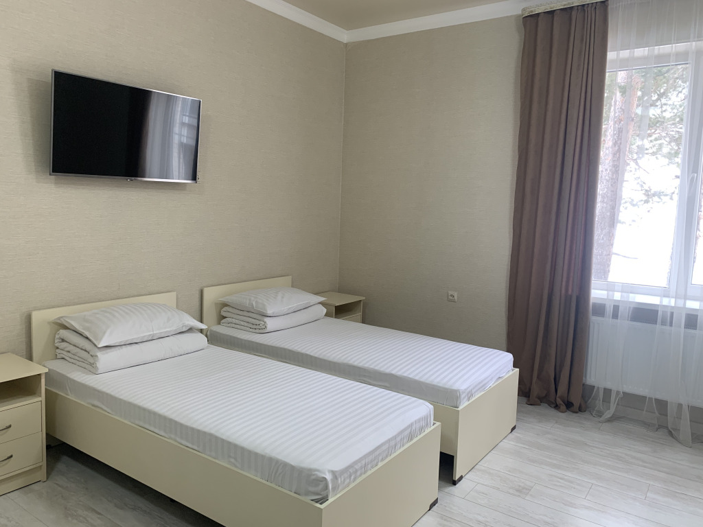 Комфортные 2-местные номера. Кровати с ортопедическими матрасами, белье отличного качества. Совмещенный санузел с теплым полом, оборудован душевым поддоном с качественной сантехникой, отделан кафельной плиткой. В номере wi fi.
