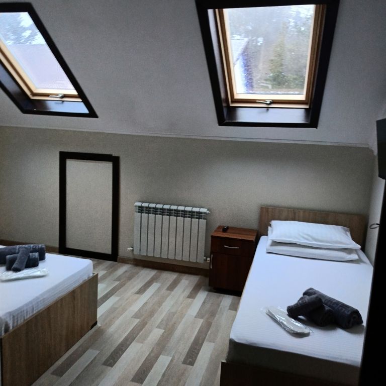 Уютные 3-местные номера с мансардными окнами и видом на живописные горные ландшафты. Санузел совмещенный с душевой кабиной, отделан кафельной плиткой. В ванной комнате все необходимые гигиенические принадлежности. В номере wi fiУслуги и удобства