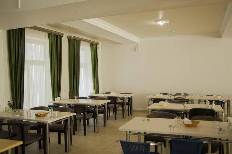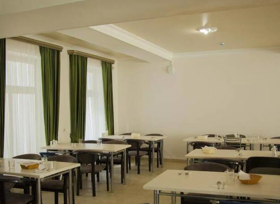 В меню кафе – кавказская и европейская кухни. Завтрак — «Шведский стол», обед и ужин — a la carte. Квалифицированные повара удивят своими кулинарными изысками самых капризных гурманов.