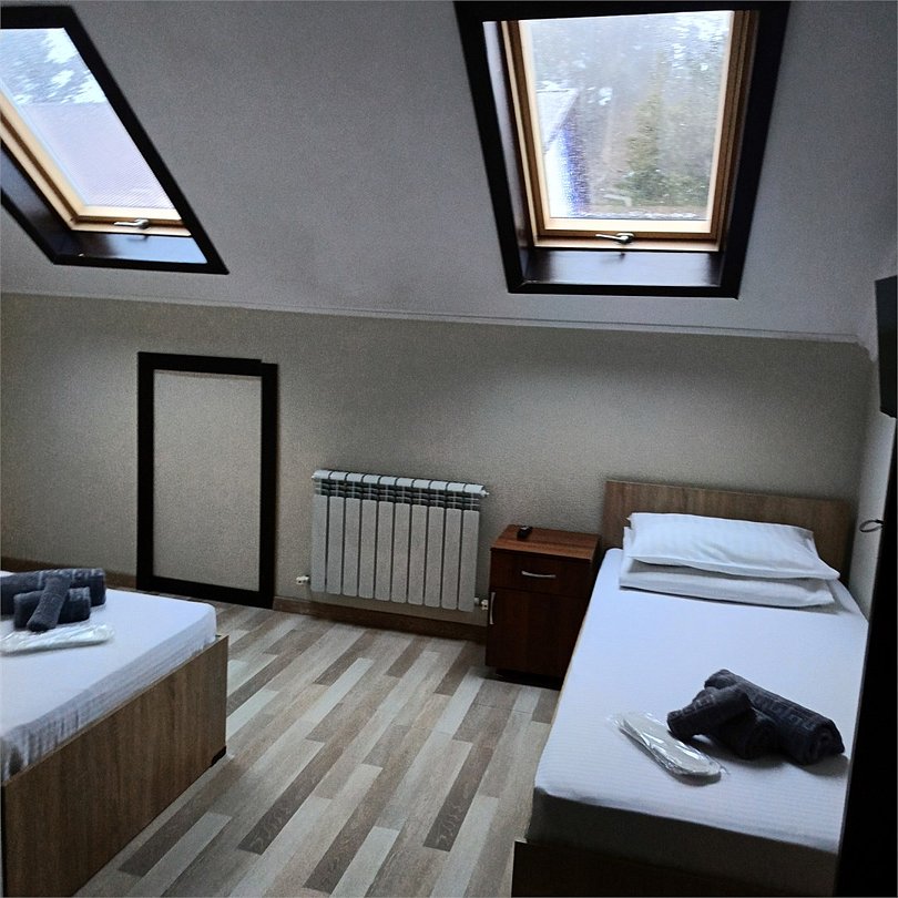 Уютные 2-местные номера с мансардными окнами на живописные горные ландшафты. Санузел совмещенный с душевой кабиной, отделан кафельной плиткой. В ванной комнате все необходимые гигиенические принадлежности. В номере wi fiУслуги и удобства