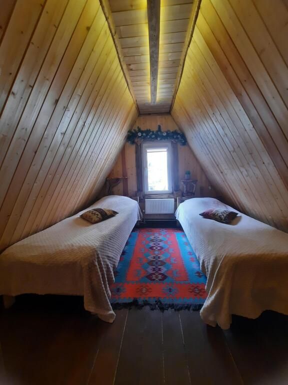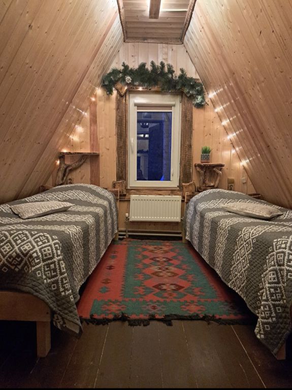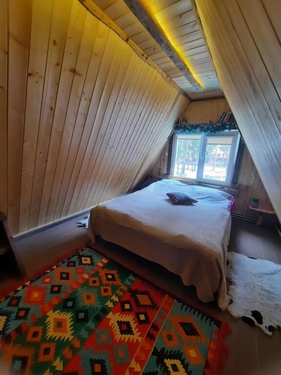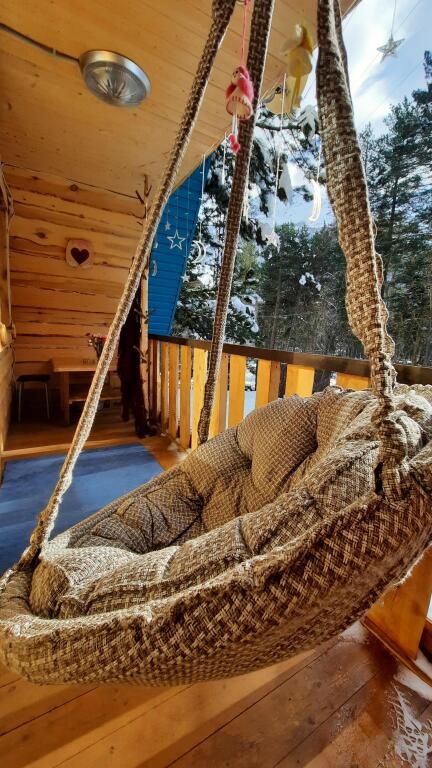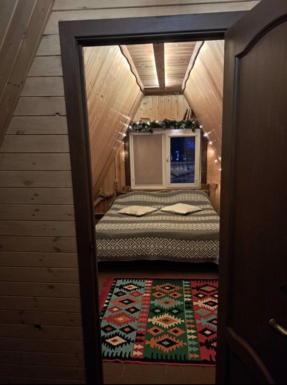 Треугольный дом находится в сосновом бору с горной речкой на территории. В доме две изолированные спальни, полноценная кухня. Есть мангальная зона. В доме все условия для комфортного проживания.