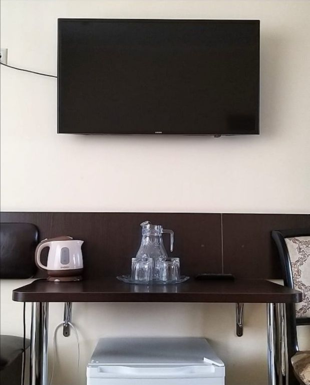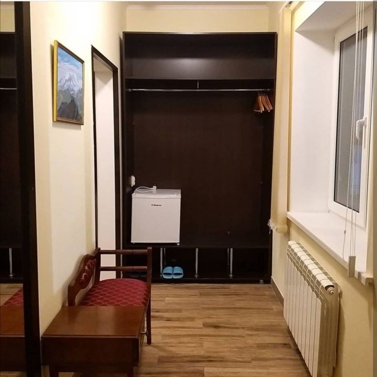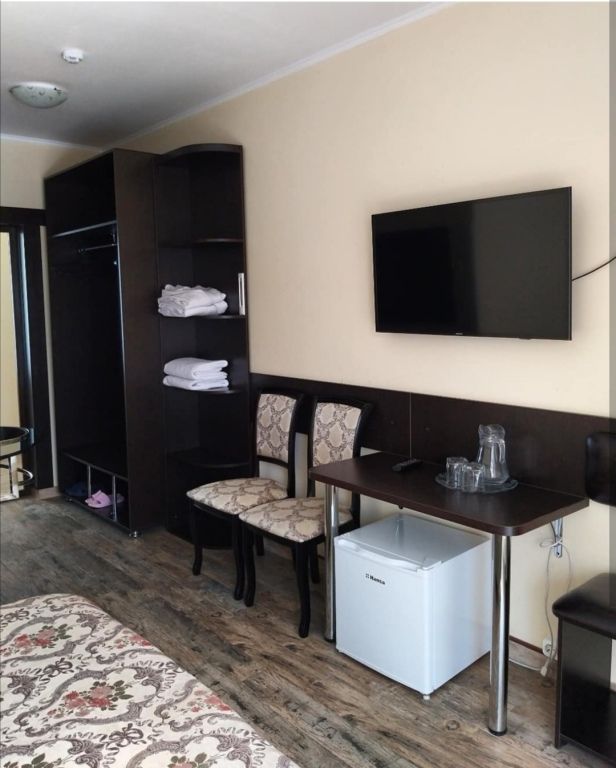 В номере: 2-х местная кровать с ортопедическими матрасами, шкаф для одежды,открытые полки для одежды, телевизор, холодильник, Wi-Fi.