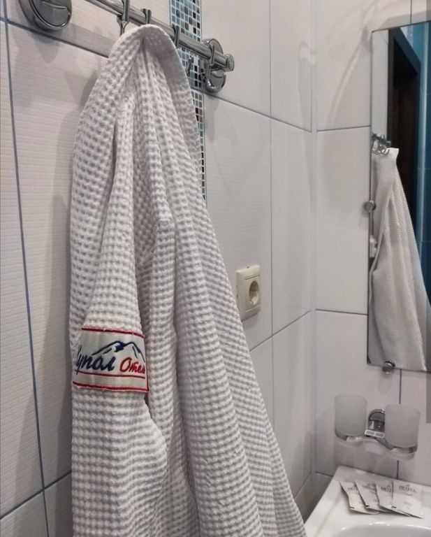 В санузле – кабинка, раковина, зеркало, унитаз, теплый пол. С номера хороший вид на гору «Чегет», балкон.