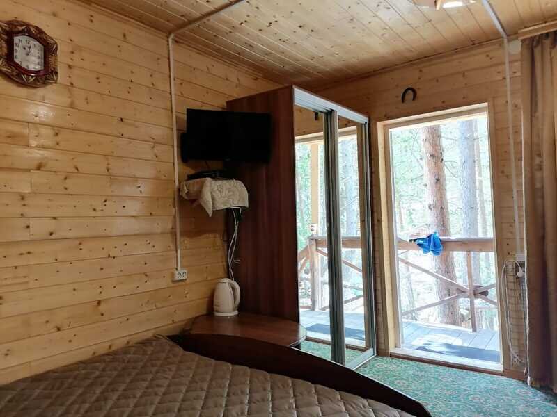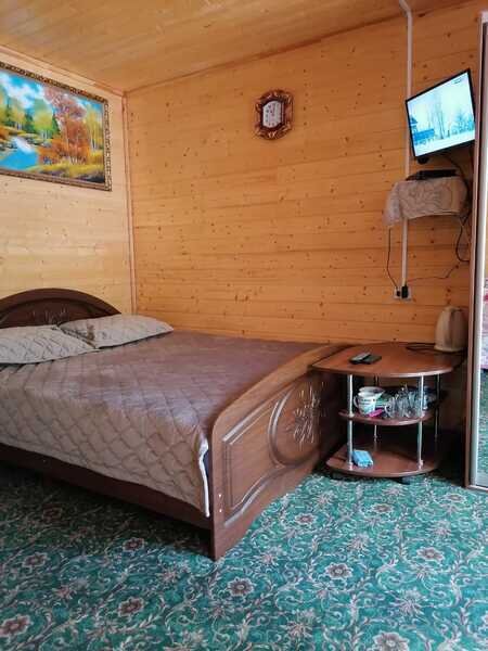Для гостей подготовлены уютные номера, а также домики разной вместимости. Все они оснащены удобным спальным местом и необходимым набором мебели. Помимо этого, номера и девятиместный домик имеют индивидуальные ванные комнаты, а для проживающих в шестиместном доме оборудованы удобства на территории.
