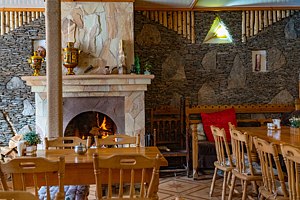 Уютное кафе с камином, где можно насладиться всем ассортиментом кавказского хлебосолья.