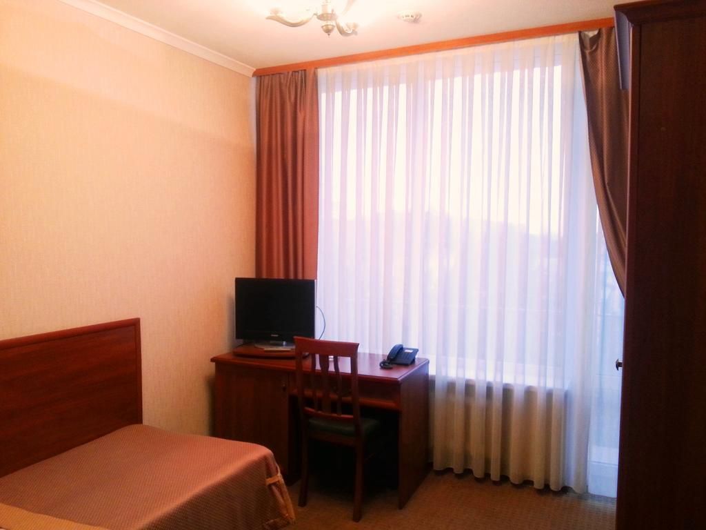 В номере удобная мебель, односпальная кровать, ванная комната с душевой кабиной, фен, Wi-Fi, плазменный телевизор, сплит-система, набор банной косметики и посуда.