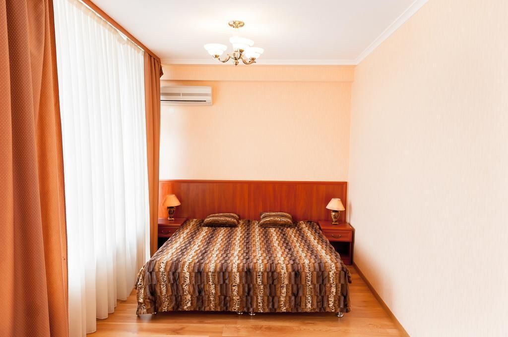 В номере две комнаты: гостиная и спальня, мебель, удобная кровать, ванная комната с душевой кабиной, фен, Wi-Fi, плазменный телевизор, сплит-система, набор банной косметики и посуда.