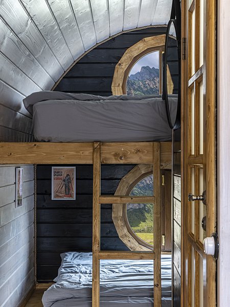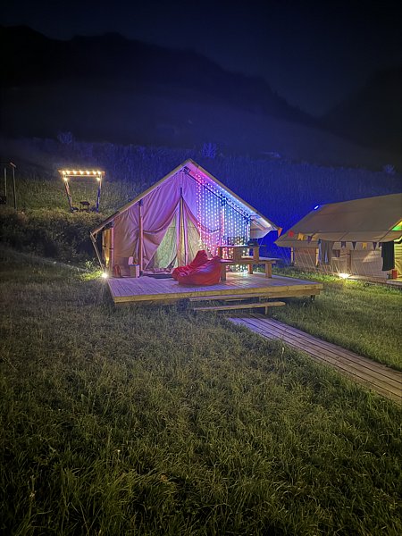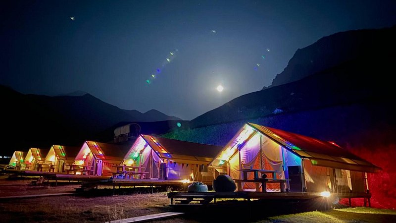 Семейный отдыхДостоинстваМы недавно останавливались в этом глэмпинге и остались очень довольны. Всё выглядит чисто и аккуратно, особенно радует приятное хлопковое постельное белье. Приятным бонусом стал матрас с подогревом. Вечером территория подсвечивается, создавая по-настоящему волшебную атмосферу. А пробуждаться с видом на горы - это настоящее наслаждение!