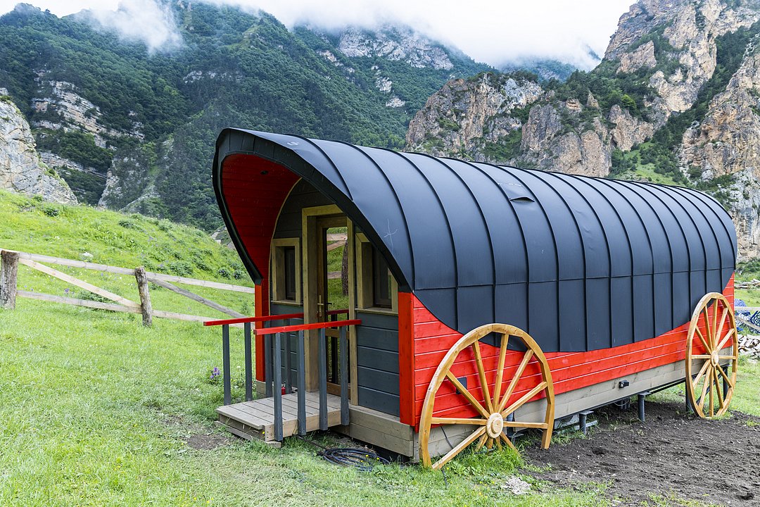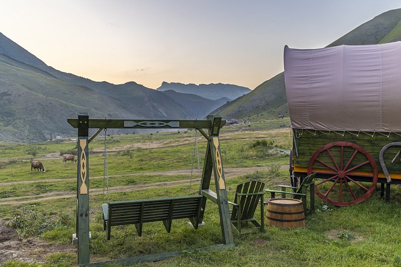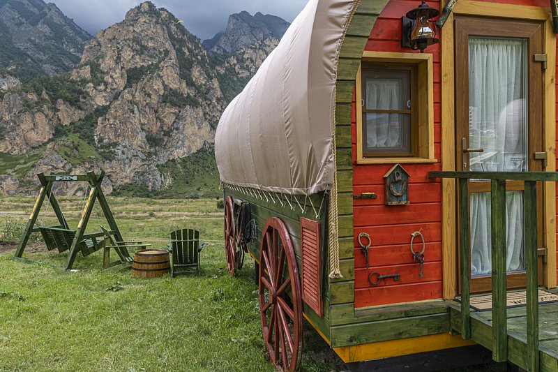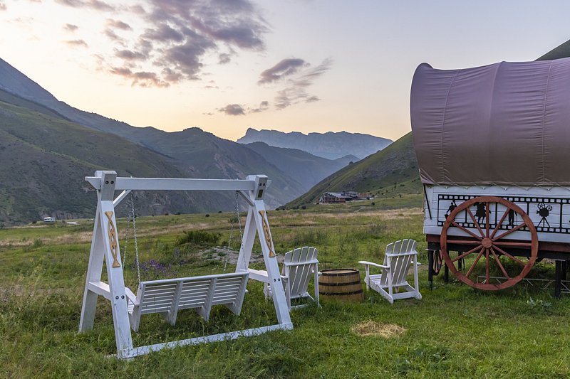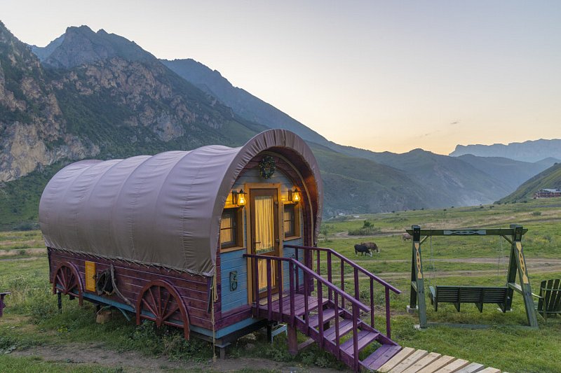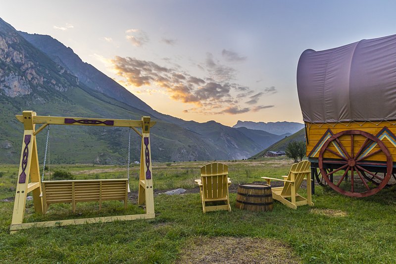 Насладитесь красивым видом на горы с видовых качель у дилижанса. Собственная гриль-зона.