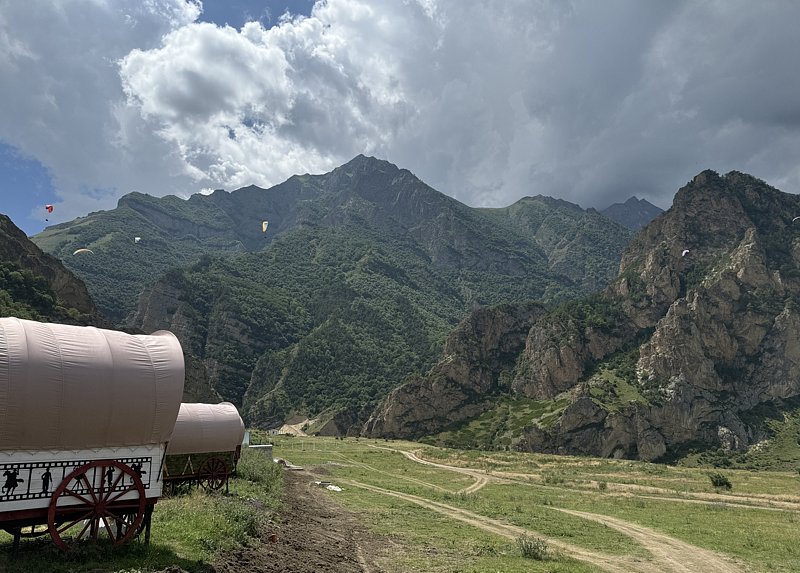 В поисковую строку Яндекс. Навигатора введите либо точные координаты глэмпинга, либо «парадром Чегем». Точные координаты: 43.295803, 43.16163