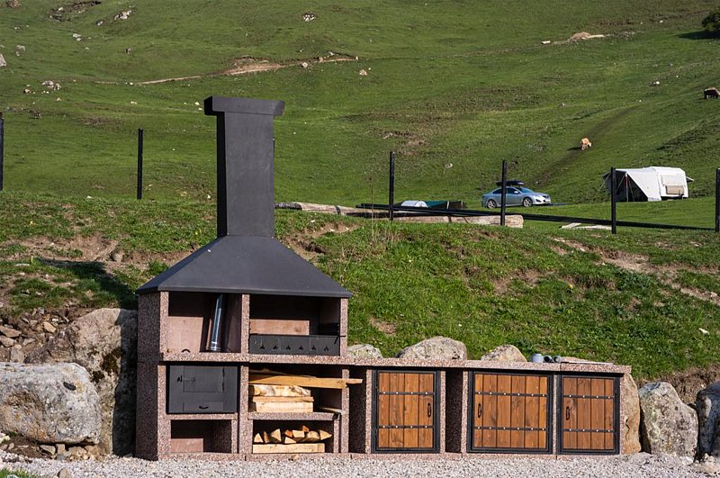 Оборудована общая зона барбекю, где гости могут пожарить мясо и овощи.