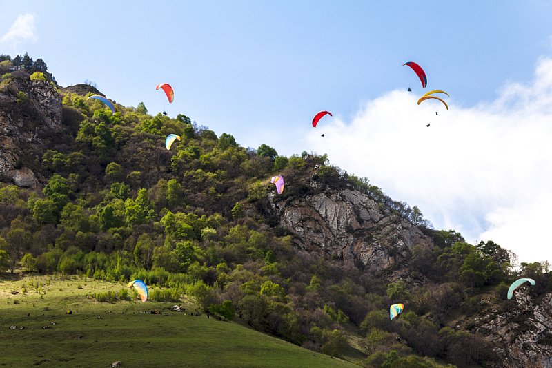 Полет в тандеме с опытным инструктором на высоте 1500-2400 осуществит вашу мечту — летать, парить вместе с орлами, с высоты наслаждаться красотами Чегемского ущелья.