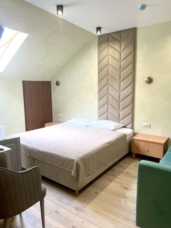 Российским гражданам при заезде обязательно нужно иметь оригинал действующего паспорта РФ. В категории «Двухместный стандартный номер с двуспальной кроватью» есть 2 номера с мансардой.