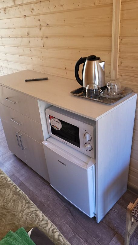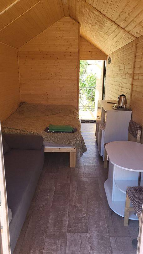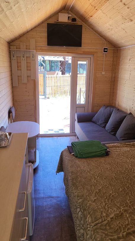 Гостям предлагаются уютные домики, оснащённые всем для комфортного проживания. В каждом номере есть телевизор, холодильник, микроволновая печь, чайник и собственная ванная комната — никаких бытовых забот, только отдых.
