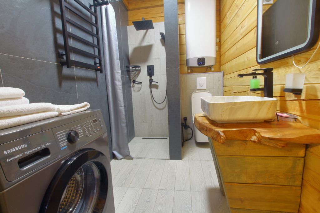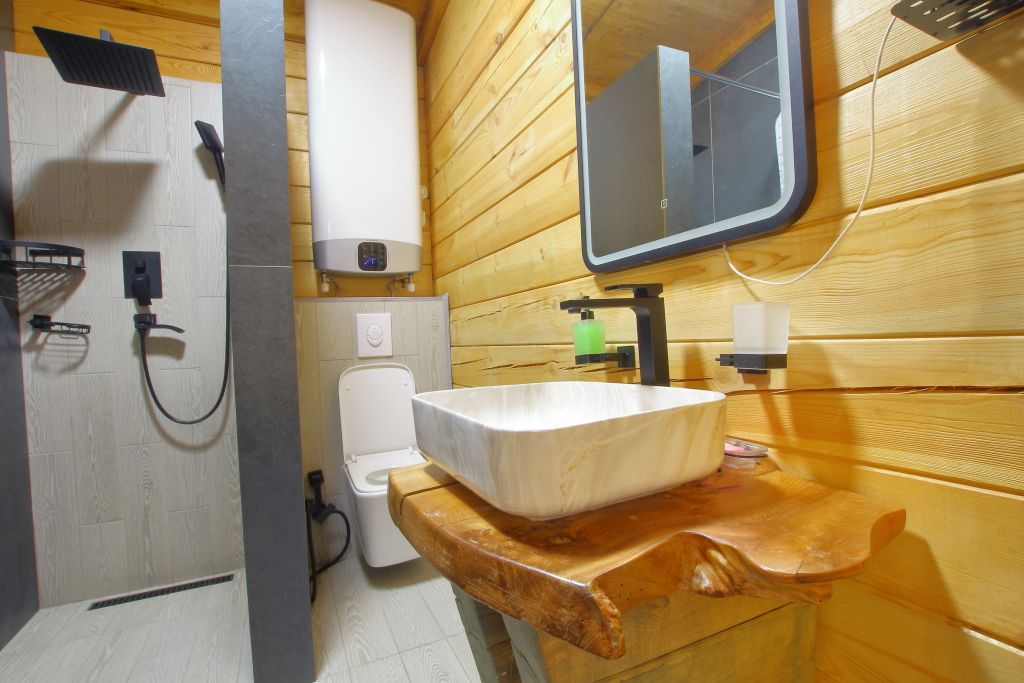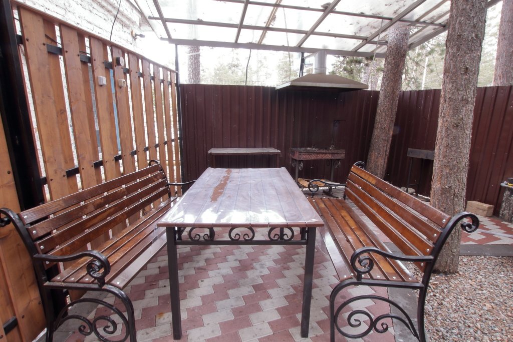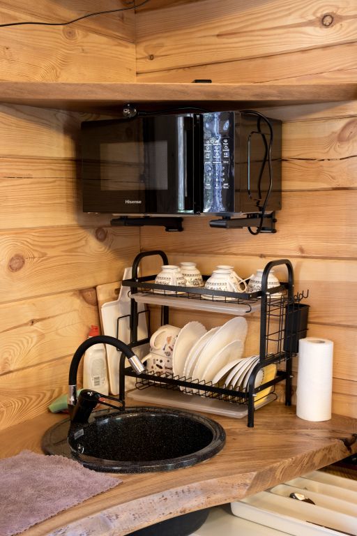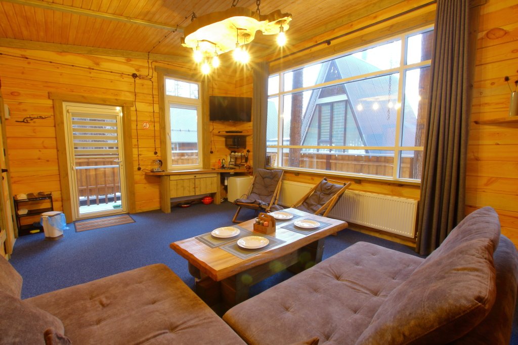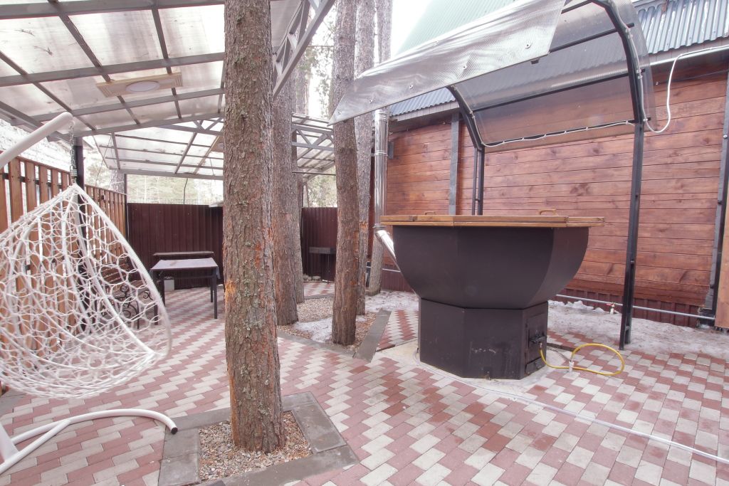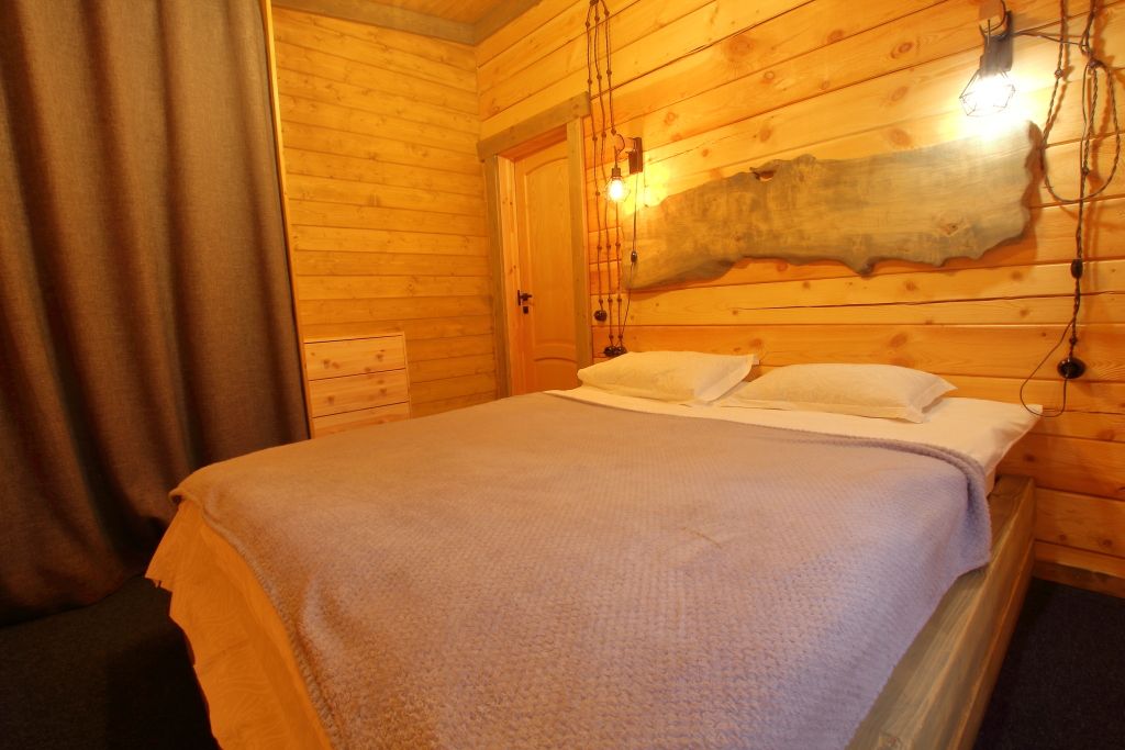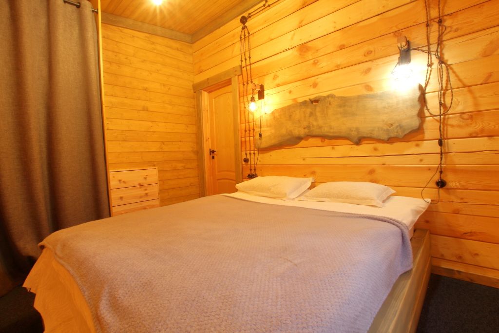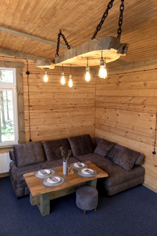 Дом оснащён всем необходимым для комфортного проживания: двуспальная кровать и диван-кровать для сна, кухня со всей необходимой посудой и бытовой техникой, санузел. На территории есть баня, купель, площадка для барбекю.