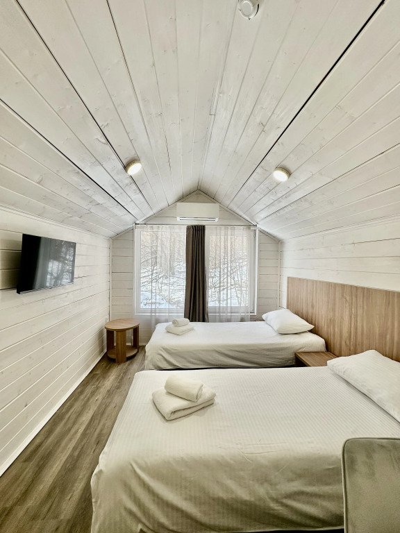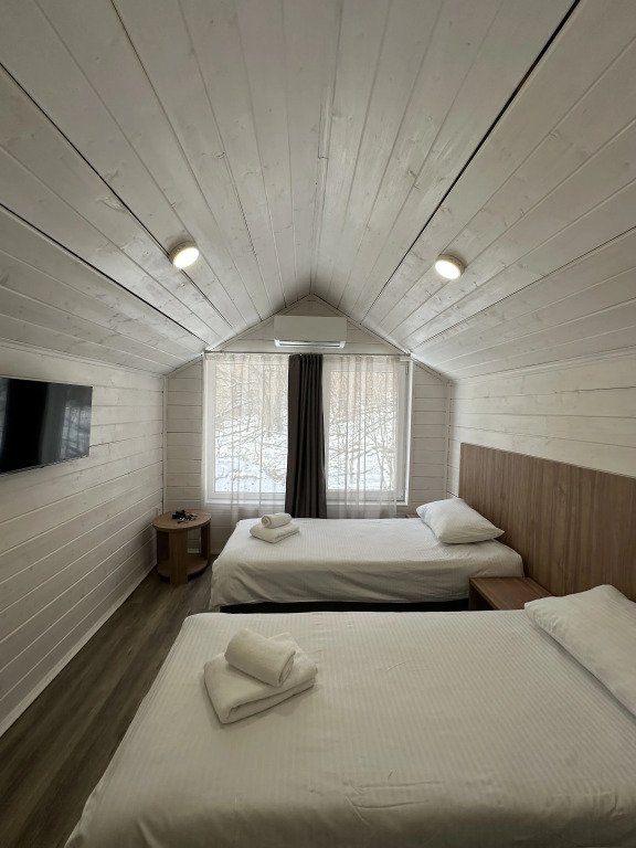 Четырёхместный коттедж с 2 комнатами 2 отдельные кровати и двуспальная кровать