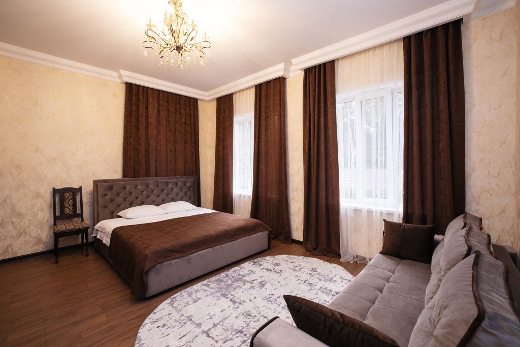 Дом отдыха ТеремЪ расположен в 5-ти минутах езды от центра города и городского парка отдыха, в зеленой зоне, в дали от шума и пыли. Нашим гостям предоставляется отдельный домик со всеми удобствами: большая 2-х спальная кровать, диван-кровать, полный набор постельного белья и полотенец, уборка номеров, санузел и душ со всеми принадлежностями, индивидуальное отопление. На территории расположена баня из сруба, беседки, мангальная зона, навес с камином для больших компаний, бассейн. Территория охраняется и находится под видеонаблюдением. Индивидуальный подход к каждому гостю!Услуги и удобства