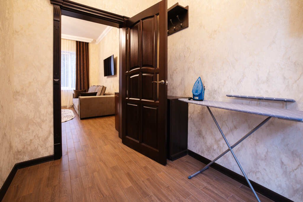 Wi-Fi, интернет, кондиционер, фен, система безопасности, утюг, санузел, теплый пол, двуспальная кровать, гладильная доска, шкаф для одежды, вешалки, зеркало, ковер, набор посуды, пресс для глажения брюк, чайник, унитаз, раковина, питьевая вода, отопление, душ, плиточное покрытие, вид во двор, ламинат, высокие потолки, стаканы, столовые приборы, стул, туалетные средства, сплит-система, мангал, принадлежности для барбекю, сушилка для белья, цифровое тв, раскладное кресло, мини-холодильник, мини-кухня, москитная сетка, шкаф-купе, телевизор со Smart TV, теплые полы, вид на лес, пуфик, общественный бассейн, морозильная камера, кресло-кровать, межкомнатная дверь, уборка номера, вешалки-плечики, бутилированная вода, без питомцевВ гостиничном номере