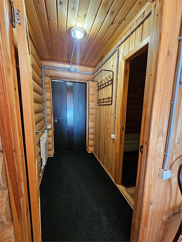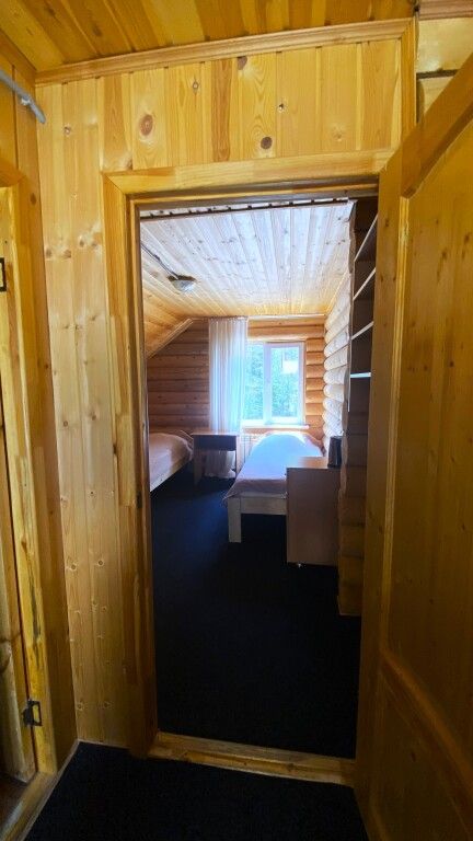Просторный коттедж, выполненный из натурального дерева с 2 спальнями на 2 этаже и гостиной с спальной зоной на 1 этаже.