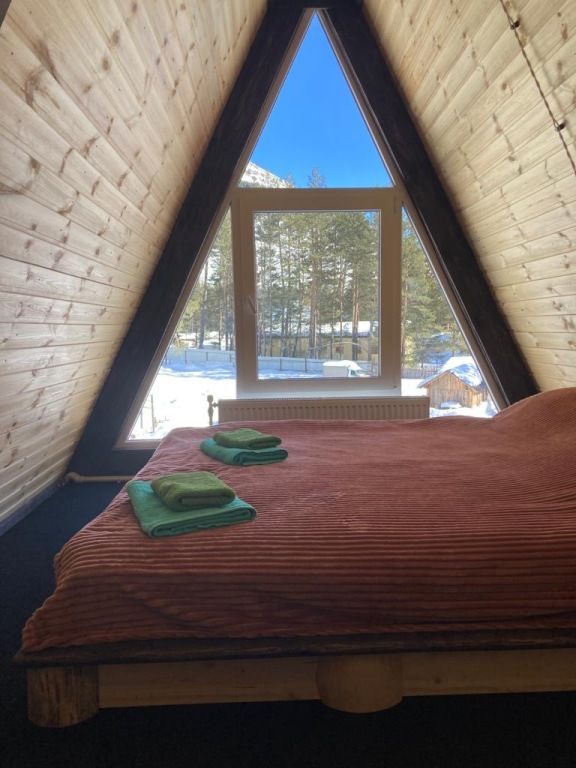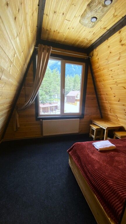 Комфортабельное размещение обеспечено в двухместных номерах, оформленных в экологичном стиле с использованием натурального дерева. Просторные комнаты оборудованы удобными односпальными или двуспальными кроватями, а из окон открываются захватывающие панорамные виды на окружающие горные пейзажи. Для вашего удобства некоторые номера оснащены собственными балконами, с которых можно насладиться свежим горным воздухом и неповторимыми закатами. Помимо этого, гости могут разместиться в уютных треугольных шале, оснащенных всеми необходимыми удобствами.