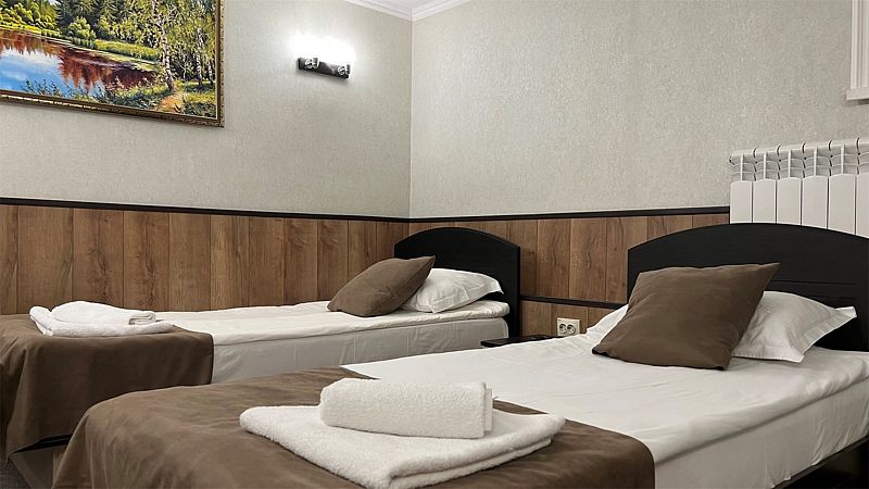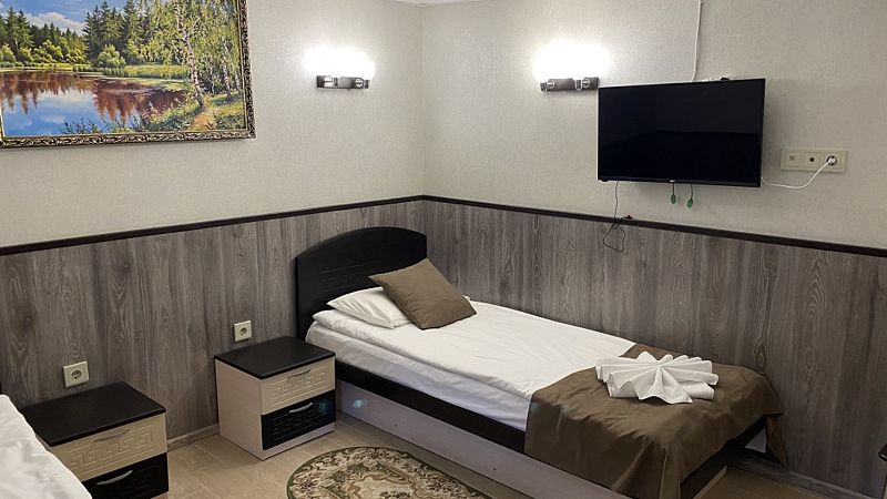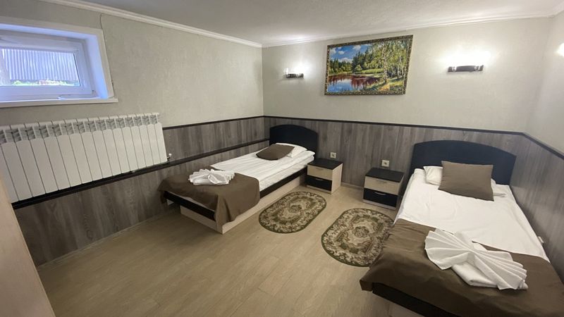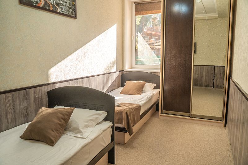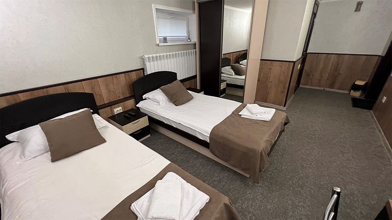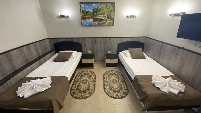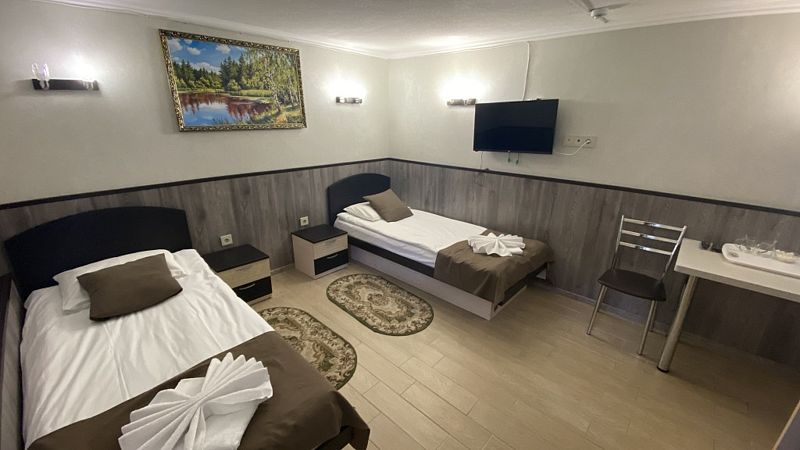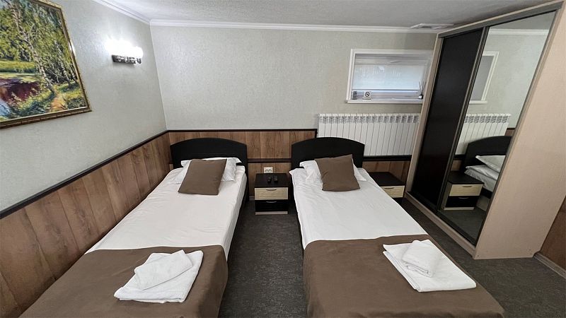 В номере есть все необходимое для Вашего комфортного проживания: две удобные односпальные кровати с чистым и свежим постельным бельем, душевая с гигиеническими средствами (одноразовые шампунь и гель для душа, а также жидкое мыло в дозаторе).