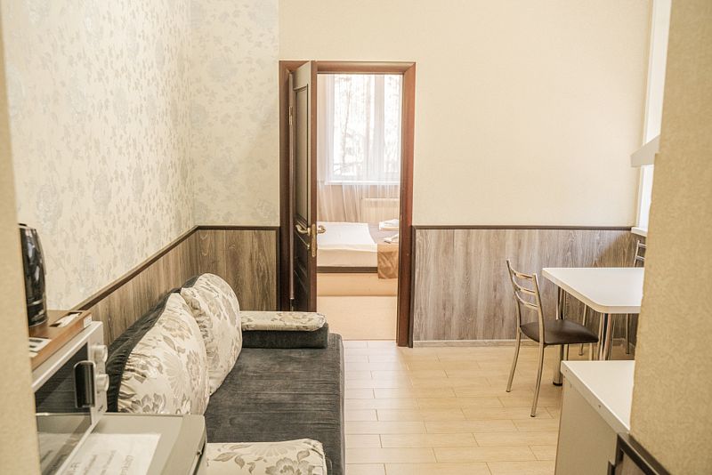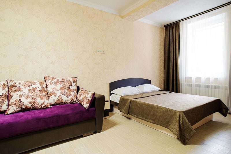 В номере есть все необходимое для Вашего комфортного проживания: удобная двуспальная кровать с чистым и свежим постельным бельем, диван-кровать, душевая с гигиеническими средствами (одноразовые шампунь и гель для душа, а также жидкое мыло в дозаторе).