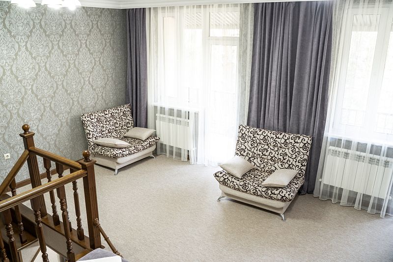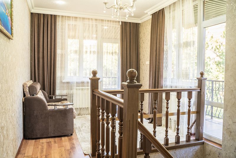 Двухуровневые (двухэтажные) апартаменты с неповторимыми видами из окна идеально подойдут для Вашего незабываемого отдыха. На обеих этажах по всему периметру номера имеется огромный балкон, откуда открываются живописные виды на горы. Апартаменты могут вмещать до шести человек — это могут быть две молодые пары, семья с детьми или большая дружная компания.