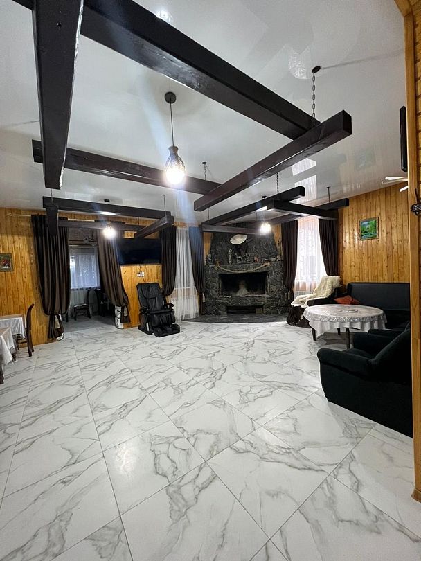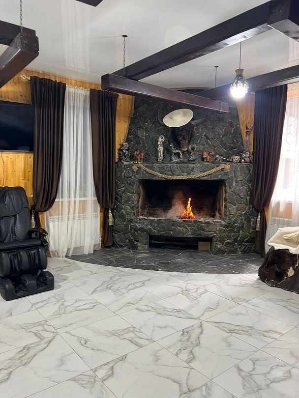 Гостевой дом предлагает своим посетителям возможность расслабиться в просторном каминном зале, который открыт с утра до вечера. Здесь можно уютно устроиться в комфортных креслах или на диване, наслаждаясь атмосферой уюта и тепла.