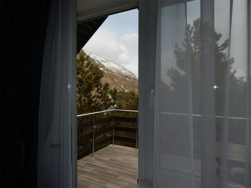 Большой номер с прекрасным видом на горы и баксанское ущелье с балконом или большим окном.