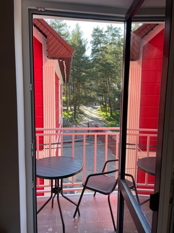 Первые апартаменты располагаются на первом этаже, вторые апартаменты на втором этаже. Гостям бесплатно предоставляется Wi-Fi, парковка, мангальная зона. Трансфер организовывается по запросу — платно. Сауна и закрытая беседка оплачивается отдельно и не входит в стоимость проживания.