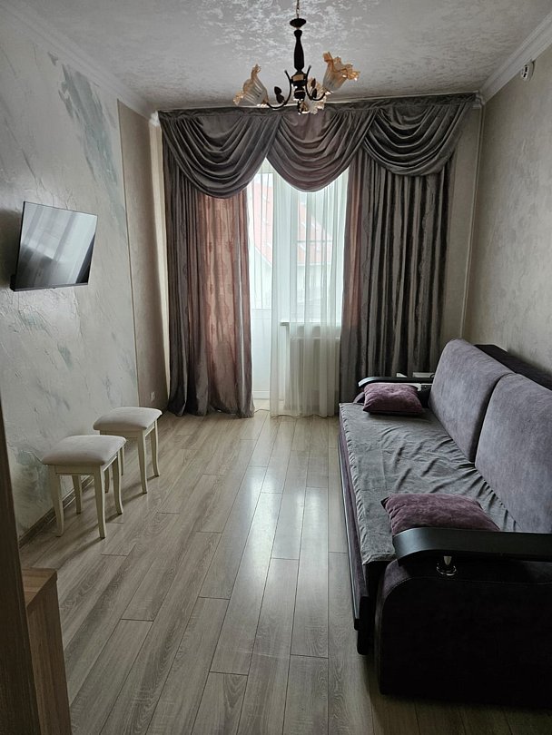 Просторное помещение с изысканным дизайном, уютной планировкой. В номере есть все необходимое для комфортного проживания: ванная комната, чистые полотенца, принадлежности для ванной, телевизор, Wi-Fi. Вместительный диван идеально подойдёт для пары. Большие окна хорошо освещают комнату, легко занавешиваются плотными шторами. Рядом с отелем есть удобная парковка для автомобилей.
