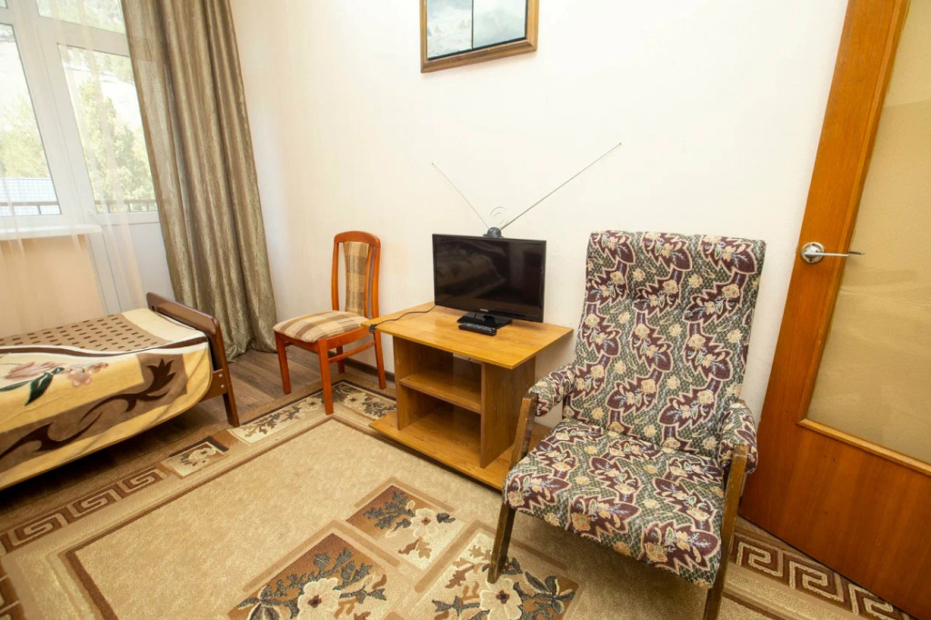 Номер оборудован современной и стильной мебелью, из техники предоставляется все самое необходимое, что может понадобиться для комфортного проживания.