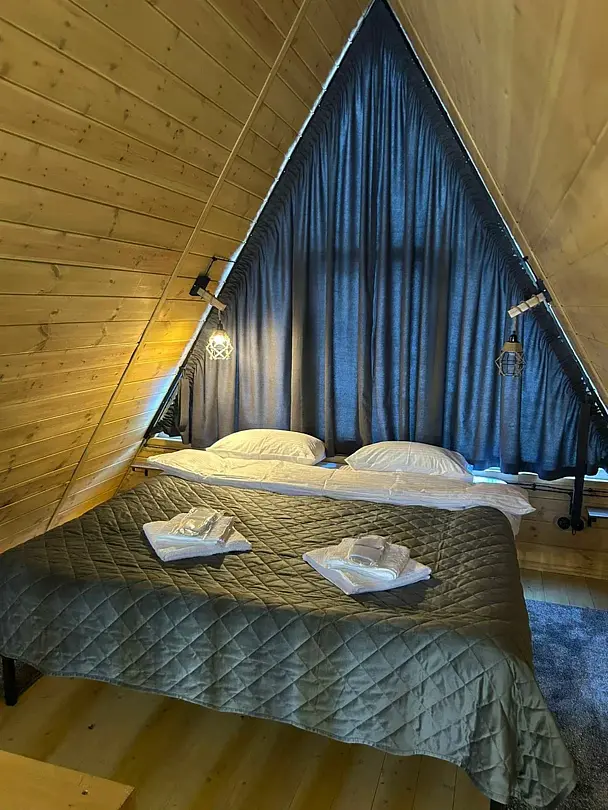 В каждом домике есть спальные места, телевизор, стиральная машина, высокоскоростной интернет, электрическое освещение и отопление. Это создаёт идеальные условия для отдыха.