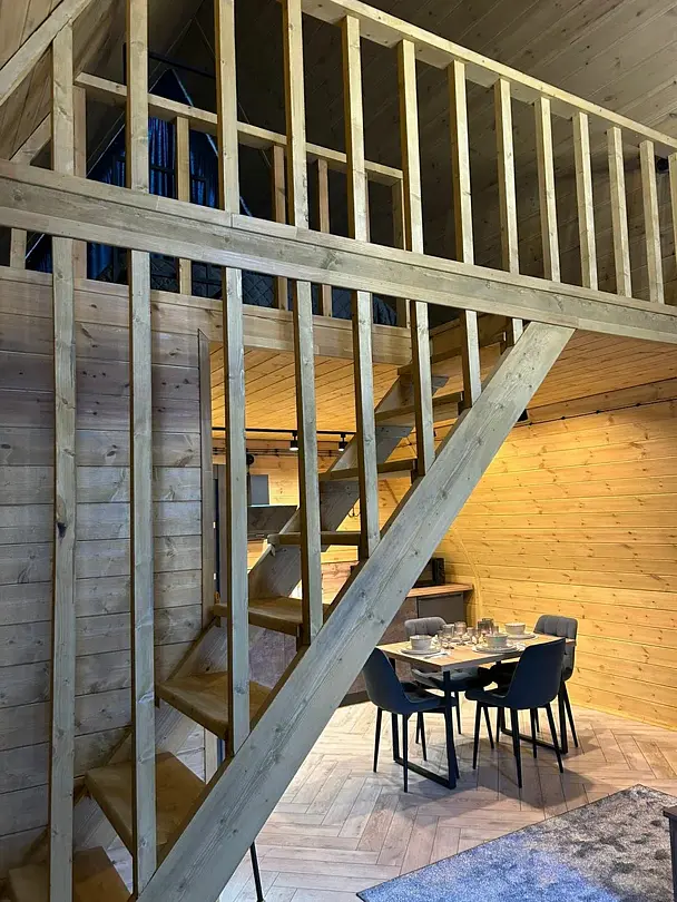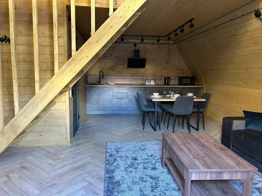 Внутри домиков царит атмосфера уюта и комфорта. Каждая деталь интерьера имеет своё предназначение, а планировка продумана до мелочей. Гости найдут всё необходимое для приятного отдыха: оборудованную кухню с бытовой техникой, включая холодильник, плиту и микроволновую печь.