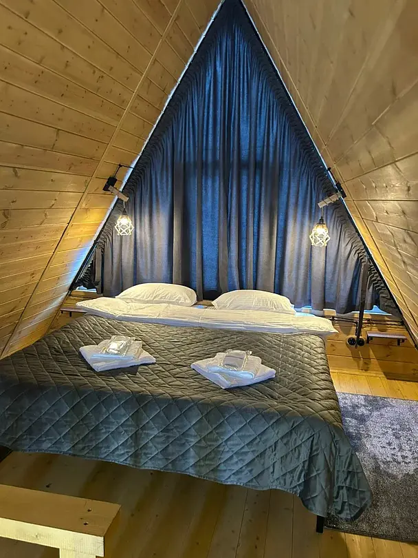 Гостевые дома «Whisper of rocks» предлагают уникальный опыт проживания в элегантных домиках А-фрейм, расположенных у подножия величественной горы Чегет. Эти современные жилища, созданные с любовью к деталям, воплощают в себе гармонию функциональности и эстетики.