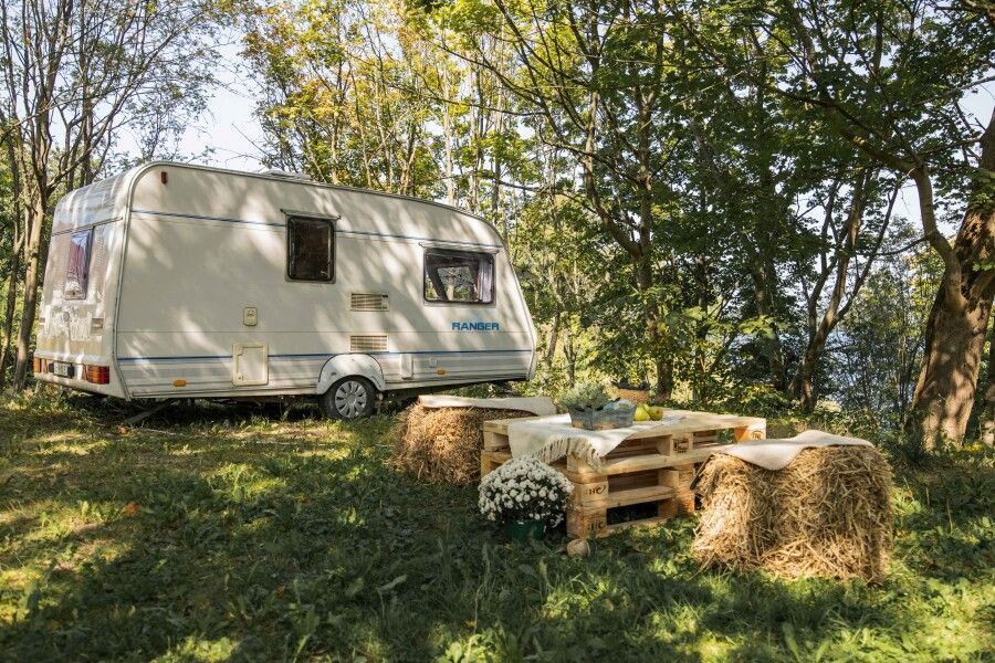 Настоящая романтика: отдых в домике на колёсах на зеленой лужайке рядом с Озером «Синявинское». (1 минута до озера и 10 минут до моря). Такой отдых понравится тем, кто любит что-то необычное, но ценит комфорт. В домике могут расположиться 2 человека, дети до 3 лет без предоставления места. С животными — по запросу.