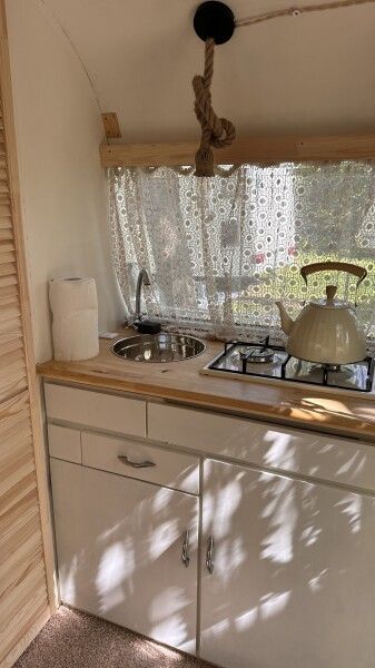 В кемпинге есть кухонная, чилл-зона, где можно приготовить чай и еду на газовой горелке