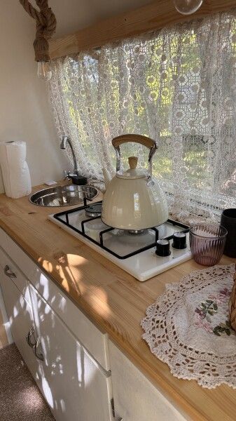 В кемпинге есть кухонная, чилл-зона, где можно приготовить чай, кофе и еду на газовой горелке
