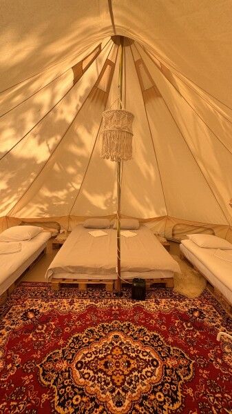 Сердечно благодарю за чудесный отдых в вашем уютном шатре! Ваше гостеприимство и забота позволили нам насладиться каждым моментом отдыха. Я была приятно удивлена, насколько комфортно и тепло в шатре, даже несмотря на мои первоначальные опасения замерзнуть. Утром меня порадовал прекрасный летний теплый душ под открытым небом – это было поистине незабываемо!