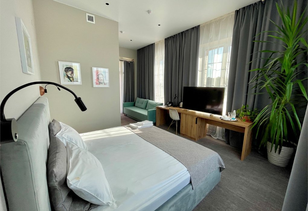 На трех этажах отеля 11 номеров с современным ремонтом, оснащенных необходимыми удобствами. В оформлении использованы качественные материалы, имеется Wi-Fi, система кондиционирования, вентиляции и многоступенчатой очистки воды. Есть собственная ванная комната. Гостеприимный и отзывчивый персонал обеспечит высокий уровень обслуживания и комфортное размещение.