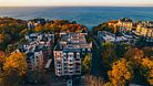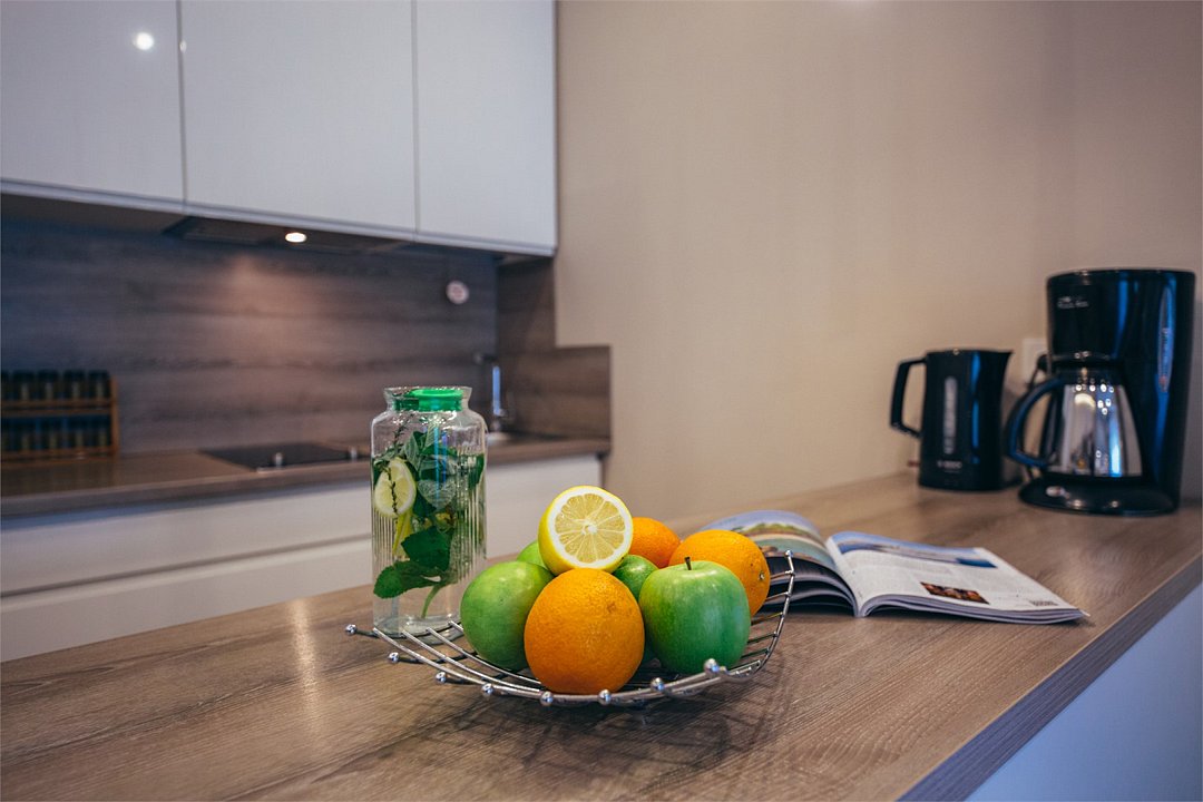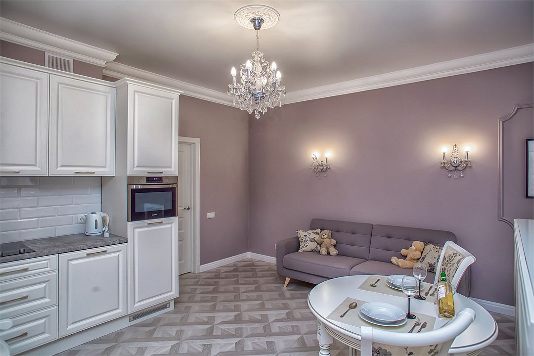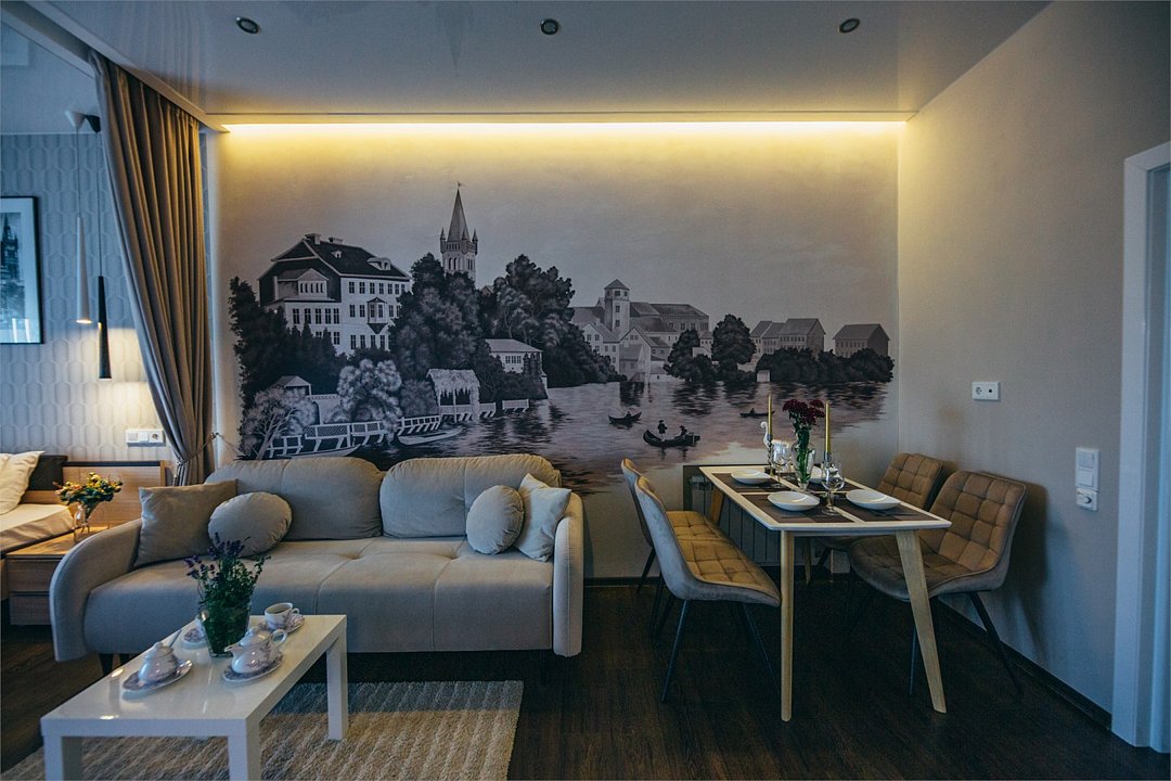 Апартаменты-студия с балконом и видом на море, семейный номер со встроенной детской кроваткой. Большой балкон и панорамные окна. Картина ручной работы на стене в стиле "Старый Кенигсберг". Номер оборудован всем необходимым для отдыха и проживания, анатомический матрас Ascona Profi Comfort, система кондиционирования воздуха и приточная вентиляция, а так же кухня со встроенной техникой и посудой. (в номере халаты, тапочки, средства личной гигиены) Туристический центр Светлогорска. До моря 200м.Услуги и удобства