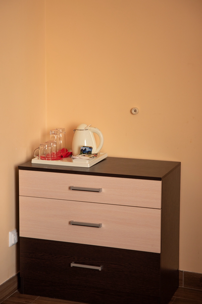 Шкаф, ТВ, 20 каналов, мини бар, чайник, набор для приготовления чая, 2 кружки, 2 стакана, капсульная кофемашина, журнальный стол. Санузел: полотенцесушитель ,ванная, умывальник, унитаз, фен, 2 полотенца для тела (или по количеству проживающих) полотенце для ног, полотенце для рук и лица.