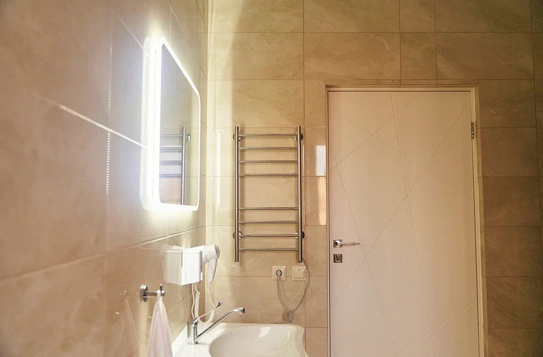 В номере есть теплый пол, ТВ, мини-бар, полотенца.