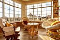 Главный дом: просторная гостиная (40 кв.м) с камином, вместимостью до 14 гостей, полностью оборудованная кухня (посудомойка, кофемашина, духовка, микроволновка), 2 санузла, 4 изолированные спальни (3 с двуспальными кроватями, 1 с большим диваном) + 2 дивана в гостиной.