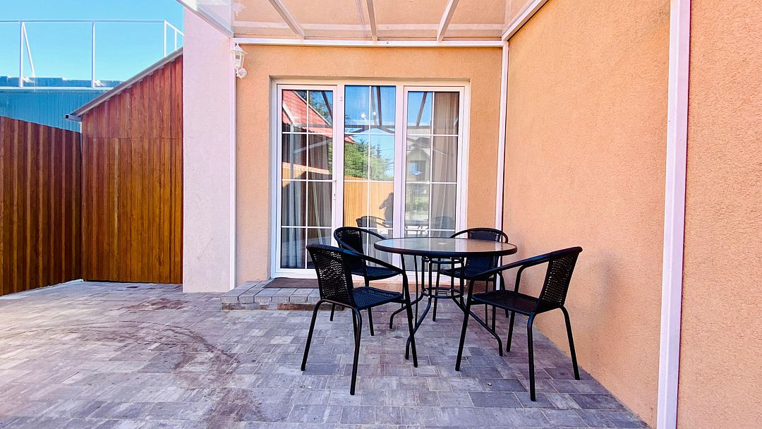 К вашим услугам кондиционер, отдельная ванная комната и удобный столик под навесом.