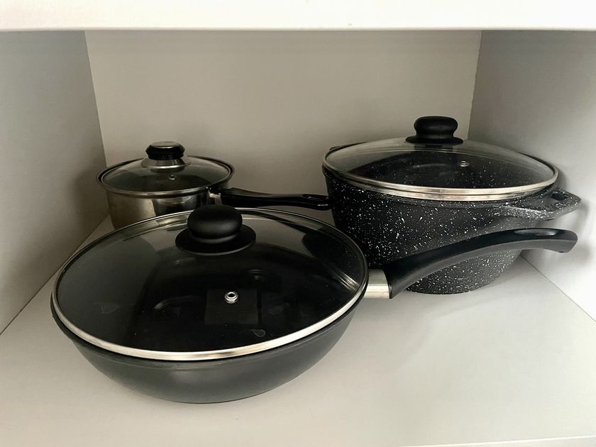 - На кухне холодильник, микроволновая печь, электрочайник, газовая плита с духовкой.