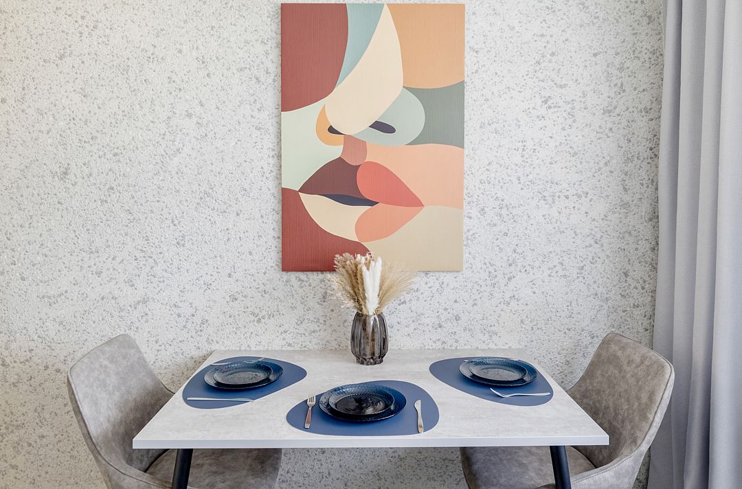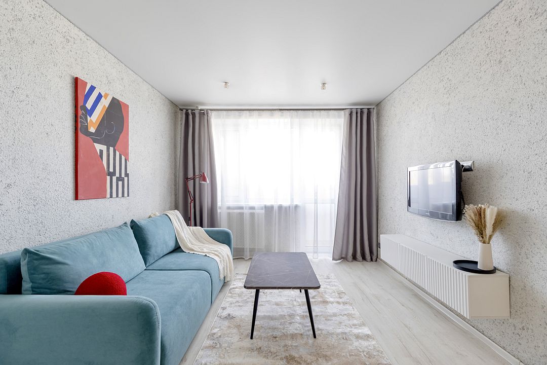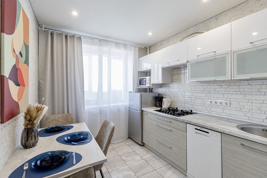 Комфортабельная квартира в центре Калининграда, с просторной кухней, отдельной спальней, гостиной и ванной комнатой.