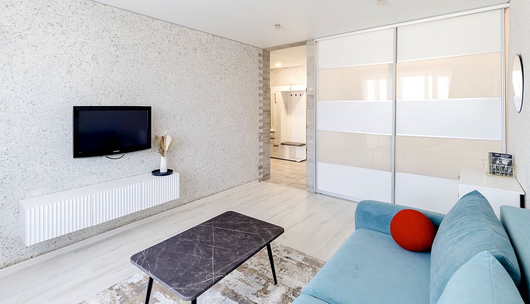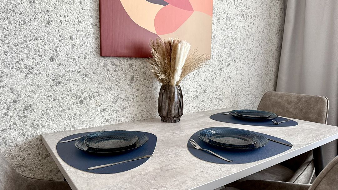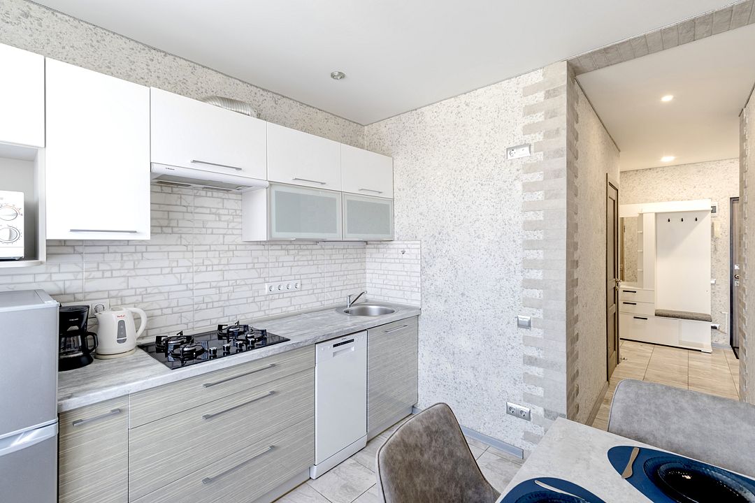 Квартира полностью меблирована и оборудована всей необходимой техникой, включая телевизор, скоростной Wi-Fi, посудомоечную машину, холодильник, плиту и микроволновую печь.