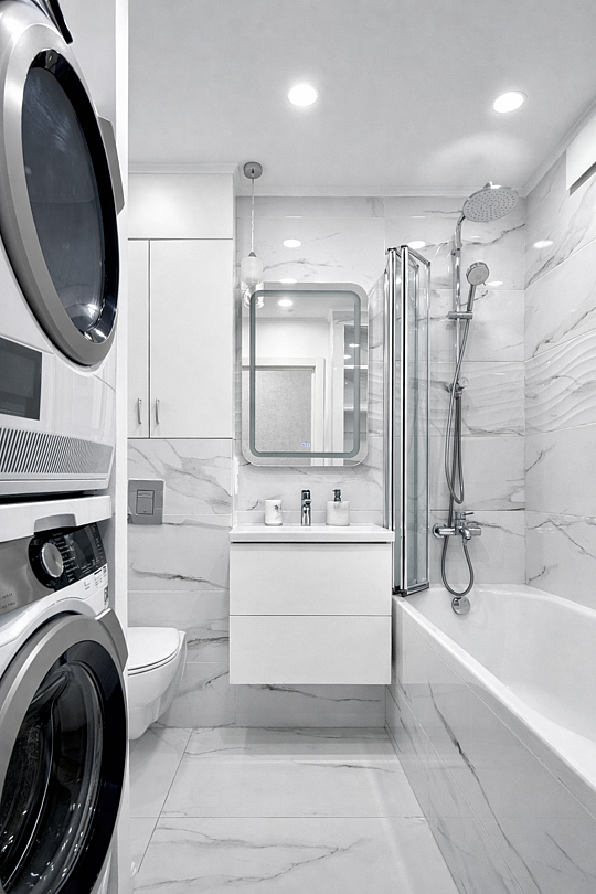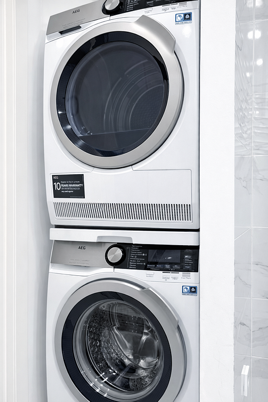 Стиральная и сушильные машины, фен, утюг, гладильная доска.