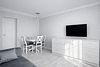 Кухня полностью оборудована: посудомоечная машина, духовка, микроволновая печь, плита, кофеварка, чайник и фильтрованная вода. Также есть стиральная и сушильная машины, фен, утюг и гладильная доска.